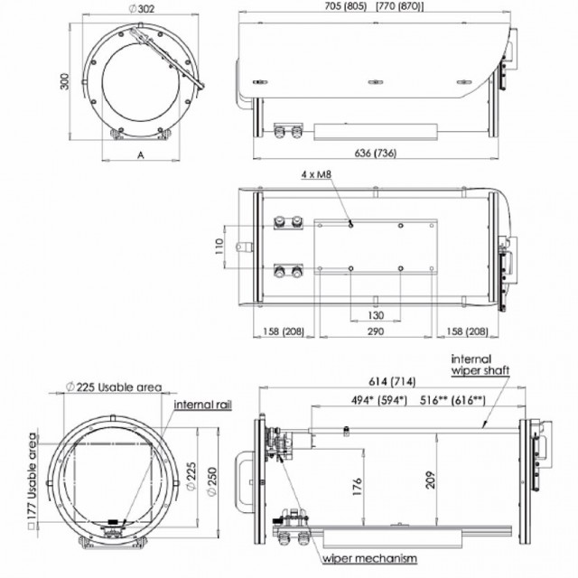 Specifications for OHS-3005 camera housing with wiper |
