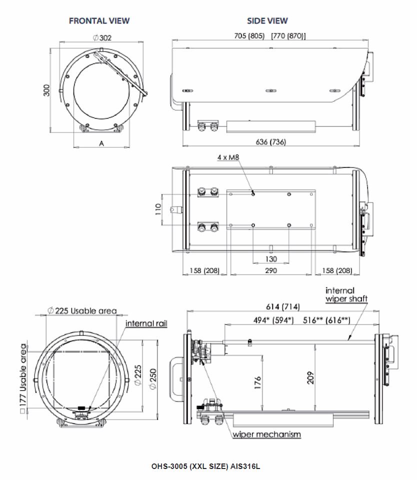 OHS-3005 Stainless steel camera housing with wiper “very large size”
